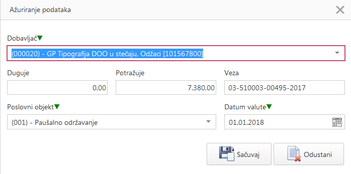Početna stanja u dobavljačima, odnose se samo na pomoćne evidencije kroz koje gledaju korisnici koji se ne razumeju i ne žele gledati kartice, kumulative i slično kroz finansijsko knjigovodstvo nego isključivo kroz pomoćne evidencije, gde nije potrebno poznavanje