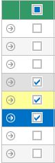 Na svakoj tabeli sa leve strane nalaze se strelice i kada se klikne na nju otvore vam se stavke koje pripadaju navedenom dokumentu. Ukolko na tabeli ne vidite strelice to znači da navedeni dokument ili bilo šta drugo ne poseduje stavke. U tabeli uvek može biti otvorena samo jedna strelica, tj. ako kliknete na drugu strelicu automatski se zatvaraju stavke prehhodnog dokumenta i automatski se otvaraju stavke dokumenta na kome se strelica nalazi. Pokraj strelice imate takozvano "Štikla" polje na koje kada kliknete mišem ili razmaknicim sa tastature pojavi se štikla i red promeni boju. U zaglavlju se pojavljuje štikla koja kada se štiklira, automatski se štikliraju svi dokumenti, odnosno svi redovi u tabeli. Isto tako ako se štikla skine skinu se sve štikle u tabeli. Štikliranje obično služi da bi se štiklirani redovi obrisali ili se izvršila nekakva obrada nad štiliranim redovima.
