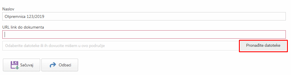 - Naslov – Opisno unesite nekakav nasloz za prepoznavanje dokumenta (Otpremnica br, tovarni list itd..)